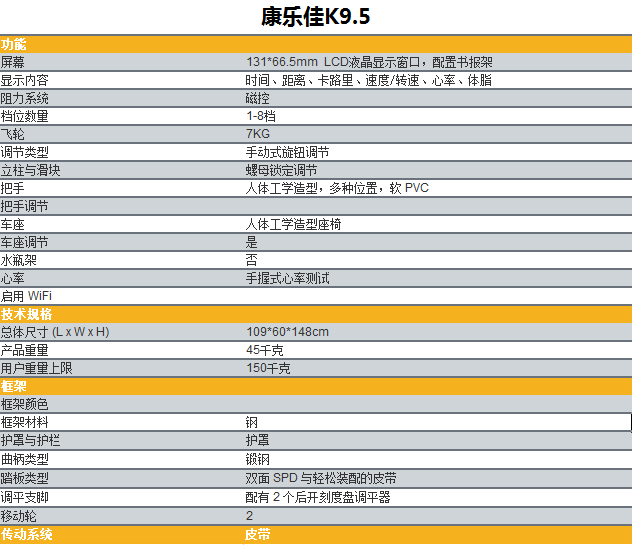 面板显示:时间,距离,卡路里,速度/转速,心率,体脂